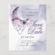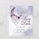 Convite de Noivado Econômico e Acessível | NOVO! Convites de Casamento Leves - Desenho mandala em roxo ametista com lua crescente com contas penduradas, rodeado por flores cor de rosa desbotado e roxas com folhagens em verde claro, realçados por um fundo com efeito de aquarela em lilás claro e dourado - o verso tem sua foto em uma moldura coordenada - theBarefootBride ™. Este é parte de um conjunto completo de papelaria de casamento, assim como convites para chá de bebê, aniversário e batizado. Para perguntas ou assistência, por favor, entre em contato com a designer indy.designer@yahoo.com.
