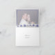 Cartão de nota de foto de agradecimento de casamento com floco de neve azul, prata cinza e branco, apresentando uma faixa ondulada em cinza prata com estrelas, flocos de neve azuis elegantes e sua foto no interior. Texto em azul. Um design elegante perfeito para o seu casamento de inverno, dezembro ou Natal. Moderno e contemporâneo, mas adequado para um casamento tradicional. Este design elegante e sofisticado pode ser usado para outras ocasiões especiais, como noivados ou aniversários.
