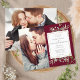 Com delicadas folhas de folhagem em aquarela em um fundo burgundy, este convite de casamento botânico econômico e sofisticado pode ser personalizado com suas fotos especiais e detalhes do dia do casamento. Criado por Thisisnotme