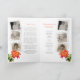 Programa funerário de serviço com dupla face floral, programa de funerário de rosa floral com cor de água, com coral vermelho, e rosa amarela, com folhas verdes em branco. Basta substituir o texto de exemplo e os suportes de fotos brancos com estrutura branca e estilo instantâneo e o quadro fotográfico flexível na frente por suas próprias fotos especiais e detalhes de informações. Pintura de rosa com aquarela original e design por Sarah Trett para www.mylittleeden.com (fotos são apenas imagens marcadoras para você substituir por suas próprias).