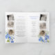 Ordem funerária de serviço de dupla face floral delfinium watercolor programa de arte com flores azuis em pó e folhas verdes em branco. Basta substituir o texto de exemplo e os suportes de fotos em formato branco e antiquado, de estilo instantâneo, e o quadro fotográfico flexível na frente com suas próprias fotos especiais e detalhes de informações. Pintura botânica originalmente delfinium color e design por Sarah Trett para www.mylittleeden.com (fotos são apenas imagens marcadoras para você substituir por suas).