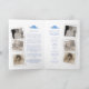 Programa funeral de ordem de serviço floral de dupla face, esqueçam-me, não as flores do programa funerário de arte em azul, branco, com toques de amarelo e verde em branco e azul escuro. Basta substituir o texto de exemplo e os portadores de fotos instantâneas por suas próprias fotos especiais e detalhes de informações. Desenho original em tinta e trabalho de arte de aquarela e design por Sarah Trett para www.mylittleeden.com (fotos são apenas imagens marcadoras para você substituir por suas próprias fotos).
