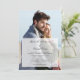Este simples convite de casamento apresenta 2 fotos verticais de sangramento de cheio, uma na frente e outra no verso. O texto aparece em uma caixa branca transparente na frente sobre o topo da foto. O backside oferece texto personalizado para informações de RSVP.