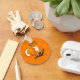 Pega nas chaves do seu amigo da raposa! A imagem é uma pequena raposa sorrindo em um fundo de pata laranja.