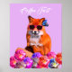 Raposa bonita com óculos e borboleta. Café primeiro - texto - fácil adicionar seu próprio texto.