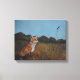 Esta tela mostra uma reprodução da minha pintura original de óleo de raposa vermelha e pássaro azul.