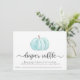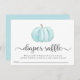 Um cartão de convite para chá de bebê bonito que apresenta uma aquarela azul pastel de uma abóbora e uma "rifa de fralda" em um roteiro de cinza flexível bonito com baloiços. Personalize a solicitação de rifa de fralda em uma simples tipografia de cinza.