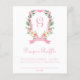 Esta adorável folha de riacho de fralda de 5,6" x 4,5" seria perfeita para seu chá de fraldas, borrifo ou gole e veja. Ele tem uma crista de aquarela rosa monificada cercada por verde e rosas, seu primeiro pacote de alegria inicial e nome, e uma cor d'água rosa coordenada riscada para trás. É único e precioso. Tão fofo por pedir aos hóspedes para trazer um pacote de fraldas para a doce menina que você está acolhendo.