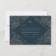 Este conjunto de convites para o casamento chic apresenta um fundo azul escuro e uma imagem geométrica falsa dourada feita de elementos botânicos. Na parte de trás está uma luxuosa design de ouro falso. A tipografia moderna acrescenta uma elegante reviravolta a esta design minimalista por Impressões de tartes Gatinhos.