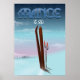 França "gelo", poster de férias desportivas de esqui de impressão de uma paisagem fria e enregrada nos Alpes franceses.