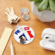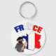 França - Pug com baguete - Chaveiro - Um design muito legal e hilário que mostra a França como uma bandeira e um vômito com uma baguete, um chapéu basco e um bigode ao lado. É para orgulhosos franceses ou fãs franceses.
