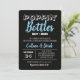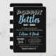 Saúde aos futuros pais! Celebre a chegada do bebê com um chá de casais com tema cervejas e fraldas usando nosso Convite para Chá de fraldas de Garrafas Poppin. Este design preto e branco moderno mostra fontes azuis para colocar todos no espírito do menino. Pop a cortiça e comece a festa!