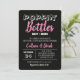 Saúde aos futuros pais! Celebre a chegada do bebê com um chá de casais com tema cervejas e fraldas usando nosso Convite para Chá de fraldas de Garrafas Poppin. Este design preto e branco moderno apresenta uma fonte rosa para escrever para todos no espírito da menina. Pop a cortiça e comece a festa!