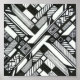 "Fratura" - Trabalho de arte de Anastacia Gutierrez: uma mão de design abstrata desenhada em caneta e tinta, com segmentos fraturantes em forma quadrada, com faixas diagonais variáveis e padrões sutis de joias, lembrando uma janela de vidro manchado com deco de arte.