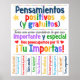 ESPANHOL LIVRES PENSAMENTOS POSITIVOS DESTRUEM O FLYER! Perfeito para um Conselho de Conselheiros, Decor de Porta, Decoração de corredor escolar, Decoração de escritório de saúde, psicólogo escolar, Decor do Escritório de Trabalho Social ou Decoração de Sala de Aula para encorajar pensamentos positivos, promover autoestima/autoestima ao mesmo tempo que usa princípios de mentalidade de crescimento. Excelente também para corredores escolares, salas de aula espanholas/bilíngues e escritórios!
