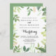 Este convite de casamento botânico verde e de volta é perfeito para um casamento simples. Esta bela design de aquarela apresenta folhagem verde botânica. Salve o papel, incluindo mais detalhes na parte traseira do convite em vez de em uma placa de gabinete separada.