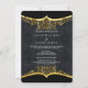 Convite Dourado para Casamento Negro. Design de Cinza Negra para Damask Elegante. Por favor, anote todas as imagens planas!