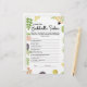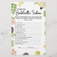Fresco do mercado Acabar com o jogo de sentenças da noiva | Divertido Chá de panela, adivinhem quem pode completar os pensamentos da noiva com a nossa divertida "Fresca no Mercado" Conclua o Jogo da Sentença da Noiva! Esta atividade de entretenimento é um complemento perfeito para o mercado, jardim ou chá de panela de temas rústicos de seus agricultores. Com os nossos produtos desenhados à mão e os deliciosos florais de aquarelas, ele complementa lindamente a sua estética natural e fresca. Aqui está como jogar: O cartão de jogo lista várias frases incompletas relacionadas à noiva, ao seu relacionamento ou às suas preferências (por exemplo, "Meu Domingo Preguiçoso Perfeito inclui...", "A coisa mais romântica que ele já fez foi...", "Se eu pudesse viagem em qualquer lugar, eu iria para..."). Os hóspedes enchem como pensam que a noiva terminaria cada frase. A noiva então revela suas respostas reais, e a convidada com os fósforos mais corretos ganha! É uma maneira fantástica de aprender mais sobre a noiva e aproveitar algumas risadas dos palpites. O cartão de jogo "Finish The Bride's Sentence" fornece a lista de sentenças e espaço para os convidados escreverem seus finais em uma design com tema atraente. É um jogo fácil de jogar que encoraja os hóspedes a pensar sobre a noiva e sua personalidade. Coordene este jogo envolvente com outros itens da nossa coleção "Fresco do Mercado", como convites, outros cartões de jogo e cartazes, para um tema de evento belamente coeso e divertido. Personalize facilmente o cartão de jogo adicionando o nome da noiva, a data do evento ou, potencialmente, personalizando algumas das frases para torná-las mais pessoais à noiva (dependendo dos recursos de modelo do Zazzle). Disponível impresso em cartolina de qualidade premium ou como um download digital conveniente para o impressão em casa. Clique em "Personalizar agora" para personalizar seu novo jogo fora do mercado Finish The Bride's Sentence Game Cards e adicionar um toque de humor e compreensão ao seu chá de panela! terminar o jogo de noiva, adivinhação do chá de panela, novo jogo fora do mercado, atividade de noiva do mercado dos fazendeiros, jogo de festa do tema do jardim, jogo de frases imprimíveis, conheça o jogo de noiva, o cartão de chá floral, o jogo de noivo, o jogo de noivo