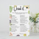Fresco do mercado Beba Se Jogo | Atividade de quebra-gelos Hilariante do Chá de panela Faça as risadas fluírem e seus convidados se misturando com nosso jogo de "Fresca no Mercado" Beba Se for Chá de panela! Este jogo divertido e interativo é uma adição perfeita ao mercado, jardim ou chá de panela rústico de seus agricultores, com nossos produtos desenhados à mão e deliciosos florais de aquarela que combinam com sua estética natural e fresca. Aqui está como jogar: os convidados se reúnem com suas bebidas. Um anfitrião lê uma declaração do cartão (por exemplo, "Beba se conhece a noiva há mais de 10 anos", "Beba se está a vestir saltos", "Beba se ajudou a planejar o chá"). Se a declaração se aplica a um convidado, eles tomam um gole de sua bebida. É um fantástico quebra-gelo que encoraja os hóspedes a aprender fatos divertidos uns sobre os outros de uma forma moderada e humorística! Lembre-se, os hóspedes podem participar com qualquer bebida de sua escolha. O cartão de jogo "Drink If" fornece a lista de prompts de diversão em um design com tema atraente. É um jogo fácil de correr que garante risos e faz a conversa começar entre convidados que talvez não se conheçam bem. Coordene este animado jogo sem interrupções com outros itens da nossa coleção "Fresco do Mercado", como convites, outros cartões de jogo e cartazes, para um tema de evento belamente coeso e divertido. Personalize facilmente o cartão de jogo adicionando o nome da noiva, a data do evento ou, potencialmente, personalizando alguns dos prompts "Beber Se" para ajustado a sua lista de convidados ou piadas dentro específicas (dependendo dos recursos do modelo do Zazzle). Disponível impresso em estoque de cartão premium ou como um conveniente download digital impressão in-home. Clique em "Personalizar agora" para personalizar o seu Fresco fora do mercado Beba Se os cartões de jogo e garantir um chá de panela memorável e cheio de risos! Beba se for chá de panela, jogo de chá engraçado, jogo novo fora do mercado, atividade de noivas no mercado, jogo de casamento rústico, jogo de festas de jardim, jogo de chá de quebra-gelados, jogo de bebidas imprimíveis, jogo de chá de panela floral