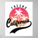 Poster de Fresno com um design que apresenta um pôr do sol e palmeiras. Este design também apresenta a Califórnia em uma fonte manuscrita com um glifo de cauda de troca para aquela aparência de na moda. Esta poster é só para você se você é de Fresno ou você pode obter como presente ou lembrança para alguém.