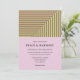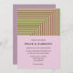 Peça aos amigos e à família que se juntem às suas celebrações do dia do casamento com este convite moderno para o casamento. O Fringe Lilac design apresenta um padrão geométrico com os temas "jazzy e tranquilo" com cantos quadrados concêntricos em cores contrastantes.