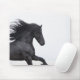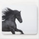 Este lindo garanhão negro da Frísia corre no início da manhã na Califórnia.