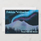 Luzes de norte roxas e azuis brilham sobre montanhas cobertas de neve em uma noite fria no Alasca. O texto alemão que lê "Fröhliche Weihnachten" aparece em azul e branco brilhantes. Adicione seu próprio texto adicional.