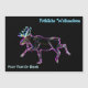 Uma representação neonatal de um alce num fundo preto. O texto alemão que lê "Fröhliche Weihnachten" aparece em azul e branco brilhantes. Adicione seu próprio texto adicional. Inspirado pelas luzes do Norte.