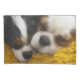 Esta é uma fronha de almofada do tamanho padrão que caracteriza uma fotografia original de dois Spaniels de rei Charles descuidados adoráveis, um tricolor e de um blenheim, dormindo junto em sua cobertura favorita.
