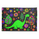 O dinossauro verde do brontosaurus do divertimento e as árvores coloridas abstraem a fronha de almofada art. original.