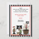 Convite de festas de aniversário de criança pirata que apresenta um navio pirata com bandeira de pirata do Skull e Cross Bones Pirate, uma caixa de tesouro de booty do pirata e alguns piratas bonitos para crianças, um com gancho e um papagaio no braço, outro com um mapa do tesouro e uma espada e todos eles com manchas oculares. Há uma borda listrada ao redor com listras pretas e brancas. Um design perfeito adorável para qualquer criança, que escolheu um tema pirata para o seu partido. Forma retangular. Cores: Preto, marrom, vermelho, branco, verde, azul, bege.