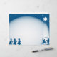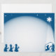 Cena de natividade de Natal simples em silhueta azul e branca. Fácil de personalizar e adicionar seu próprio cumprimento de Natal ou versículo das escrituras no espaço. Imagem disponível em vários presentes e produtos.