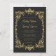 Fronteira de ouro ornamentado no convite de casamento preto. Dourado texto. Lado de trás preto. Projetado para o casamento tradicional, não tradicional e unísexo. Ajustados mais eficientes na placa vertical 5x7.