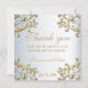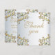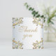 Elegante Cartões de agradecimentos de casamento personalizado com uma elegante borda de ouro falso embelezada com gemas turquesas em um fundo metálico prateado. O texto é totalmente personalizável.