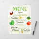 Personalize este Menu do participante com os seus próprios itens de menu. É um menu divertido e rústico com frutas de aquarelas e legumes e uma fonte de estilo manuscrito. Perfeito para ocasiões casuais!