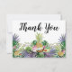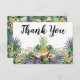 Prepare-se para uma viagem aos trópicos com este design de "Obrigado" frutado e tropical. Apresenta uma variedade de frutas tropicais, incluindo cocos, abacaxis, kiwi e abacates com um melão rosa suculento adicionado para completar. Folhagens exuberantes e lindas abundam junto com toques de rosa e roxo misturados para dar um toque de variação de cor. Ótimo para dizer obrigado pelas suas ocasiões de verão.
