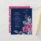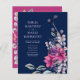 Lindos convites de casamento florais cor-de-rosa e azul-Marinho.