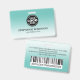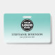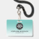 Um moderno crachá de nome de design de negócios teal que destaca o logotipo de sua empresa e o nome dos funcionários. Opção para incluir informações adicionais da empresa e um código de barras de digitalização na parte traseira, se necessário. Este design seria perfeito para qualquer empresa e o fundo pode ser mudado para qualquer cor.