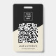 Crachá moderno mínimo bege de funcionarios para funcionários com foto, código QR, logotipo da empresa e nome e cargo do funcionário. Você pode personalizá-lo facilmente com seus detalhes comerciais.