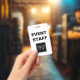Crachás especiais de ID de funcionarios de evento que incluem um modelo de logotipo em ambos os lados, você pode substituir pelo logotipo e gráfico de sua empresa ou evento. Projetado para empresas, partidos, concertos ou funcionarios e segurança de convenções. Este design permite uma imagem diferente em cada lado ou você pode usar sua imagem em ambos os lados.