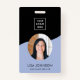 Funcionarios preto mínimo moderno Crachá de código QR de código mínimo moderno crachá de funcionarios de funcionário com foto, código QR, logotipo da empresa e nome e cargo do funcionário. Você pode personalizá-lo facilmente com seus detalhes comerciais.