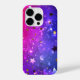 Fundo cor-de-rosa abstrato azul com pontos luminosos e estrelas.