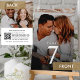Adicione um toque personalizado à sua recepção de casamento com estas impressionantes cartas de números da mesa de casamento. Apresentando uma foto romântica do casal na frente, o design cria uma atmosfera íntima e quente. O verso inclui uma mensagem sentida e um código QR para contribuições de fundos da lua de mel, combinando conveniência com sentimentalidade. O layout moderno, com números grandes e fáceis de ler e uma fonte na moda e limpa, garante que os hóspedes possam encontrar facilmente seus assentos. Estas cartas são perfeitas para casais que procuram adicionar um elemento pessoal e memorável ao seu dia especial.