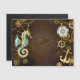 Fundo de madeira castanho com fundo marinho, cordilheira mecânica, volante antigo, âncora de ouro e diversas engrenagens de ouro e latão. Estilo Steampunk.