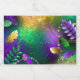 Fundo de grãos de cereais, iridescentes, textualmente, com manchas roxas, amarelas e verdes, decoradas com penas e miçangas brilhantes. feriado Mardi Gras.