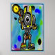 Um robô de um olho pintando o fundo em cores diferentes. Esta é uma peça de arte gerada por IA.