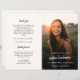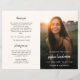 Uma ordem de serviço simples e moderna dobrou o programa de funeral do orçamento para celebrar a vida de seu amado no estilo moderno de design minimalista. O programa pode ser facilmente personalizado com sua própria foto e texto para criar um tributo especial para o funeral, memorial ou celebração da vida do seu ente querido. A imagem mostrada é apenas para fins de ilustração para ser substituída pela sua própria foto. A imagem é de uma jovem feliz, com cabelos castanhos compridos, vestindo um colete floral botânico. Se você precisar de ajuda para personalizar este produto, entre em contato comigo usando o botão de mensagem e terei todo o prazer em ajudá-lo.
