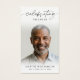 Keep the memory of a loved one close with this custom personalized prayer card featuring one cherished photo, the title CELEBRATING THE LIFE OF NAME and dates on the front and the editable poem "Do Not Stand At My Grave And Weep" that you can change to a heartfelt remembrance message, bible verse or other meaningful poem accented with a cross on the back. With its simple yet elegant classic black and white design and elegant script typography, it makes a meaningful keepsake to share at a funeral, memorial service, visitation, wake or Celebration of Life and offers comfort and a lasting tribute for family and friends. Its small and portable size of 3.5x2" (wallet-sized) makes it convenient for loved ones to carry it with them as a reminder of your loved one’s life and spirit.