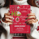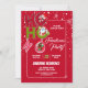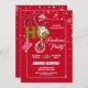Engraçado HO HO O Retro Natal Convite de festas, apresenta uma tipografia manuscrita "HO HO HO" com personagens de desenho animados de Natal: Papai Noel, Neve e Urso de Teddy, isolada sobre fundo vermelho com flocos de neve brancos. *** Clique no botão editar/personalizar para personalizar este design com seu texto ou nome pessoal. Feliz Feriados!