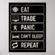 Arte engraçada de mural com a citação comer, trocar, pânico não pode dormir repetindo. Ideia de presente humorística para cada negociante e investidor para a sua mancaverna. BIrthday ou presente engraçado de Natal.